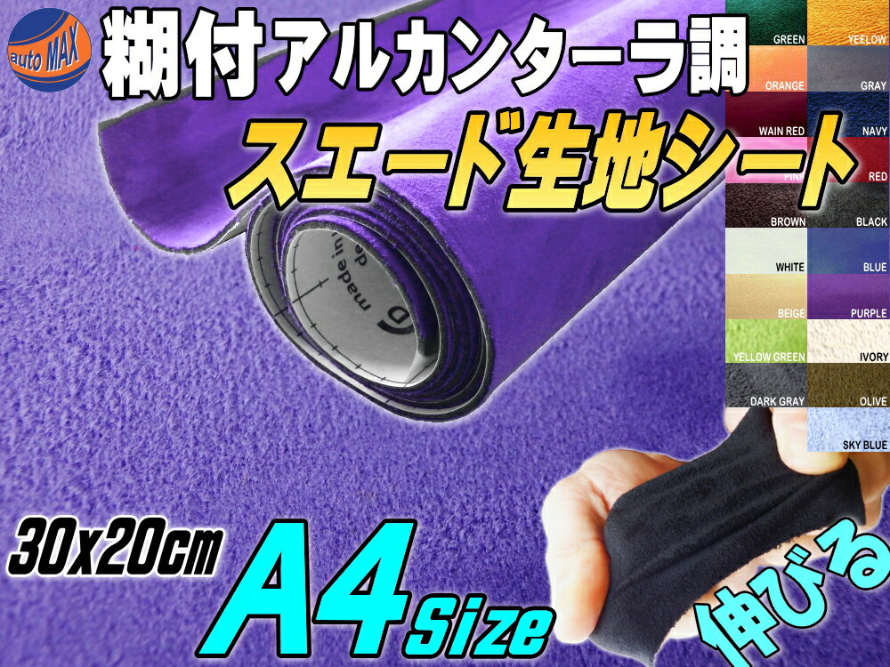 スエード(A4) 紫■【メール便 送料無料】スエード生地シート 糊付き パープル/アルカンターラ調/30cm×20cmアルカンターラシート/バックスキン曲面対応/カッティング可能シート状/インテリア/ウォールクロス/革/レザー検エクセーヌ【RCP】