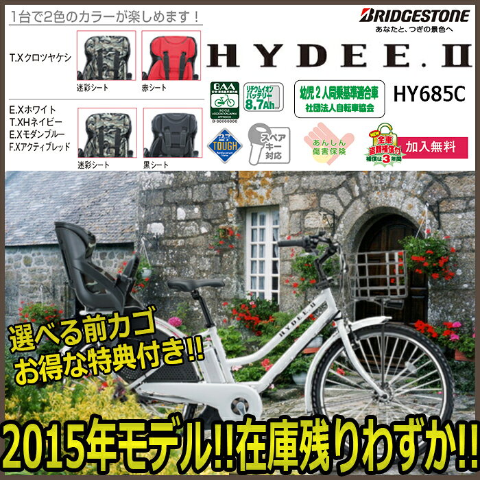 【17時までのご注文で翌営業日発送可】【送料無料】ブリヂストン 2015年モデル HYDEE.2 ハイディツー 後子供乗せ付き 電動アシスト自転車 HY685C 8.7Ah 自転車 幼児2人乗り対応 【電動子供乗せ 26インチ】ハイディー2 ブリジストン